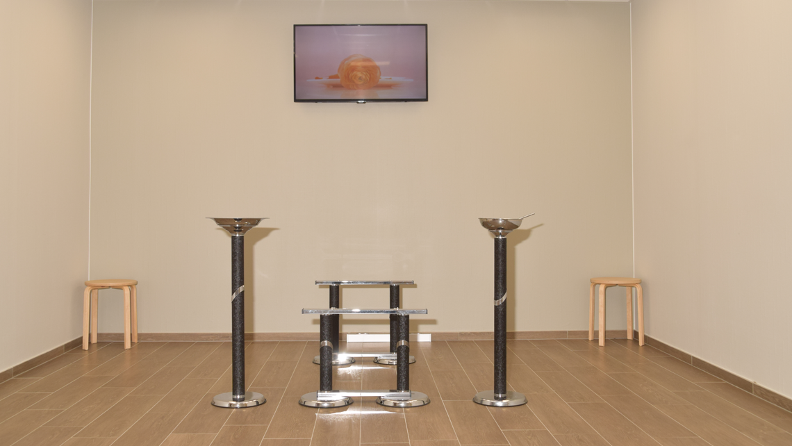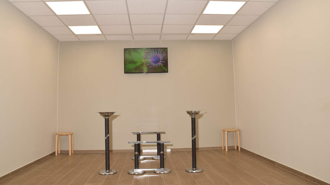 Salon équipé d’écran de télévision pour diffuser une vidéo hommage durant les visites